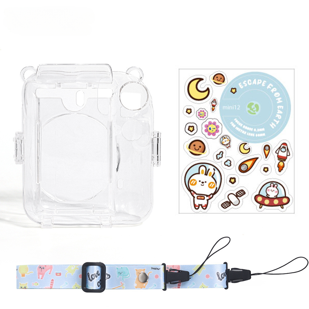 Clear Case Compatible With Polaroid Instax Mini12 Only, Crystal Case Includes Photo Transparent Storage Box, Strap, Sticker