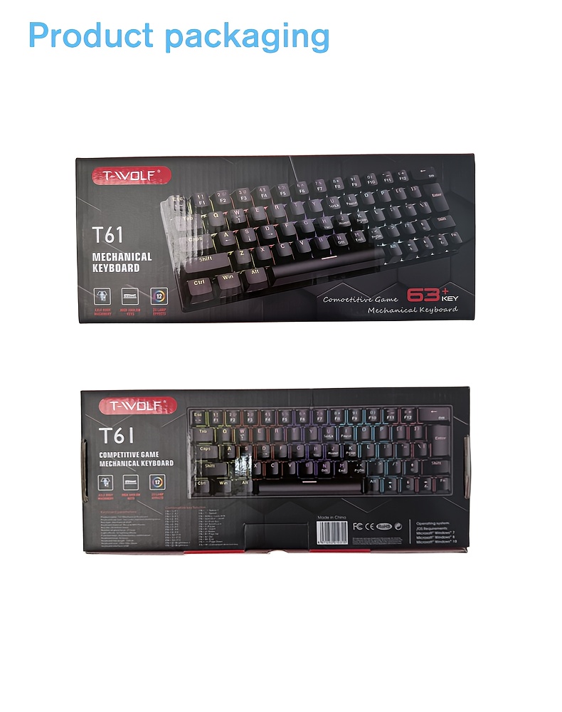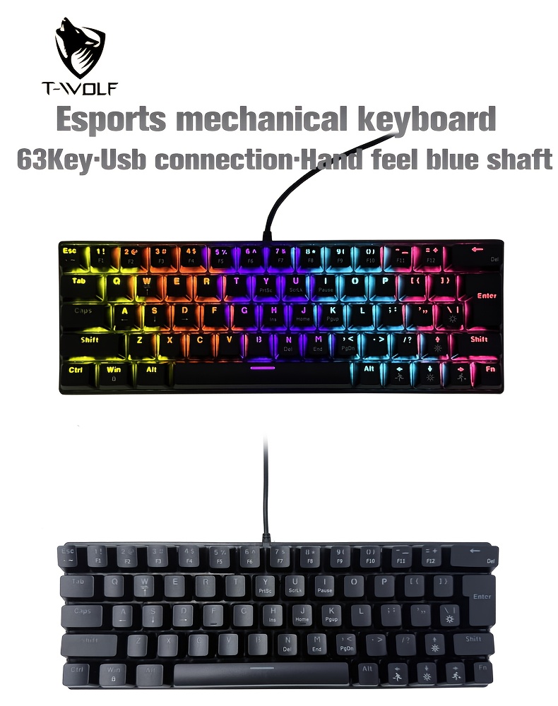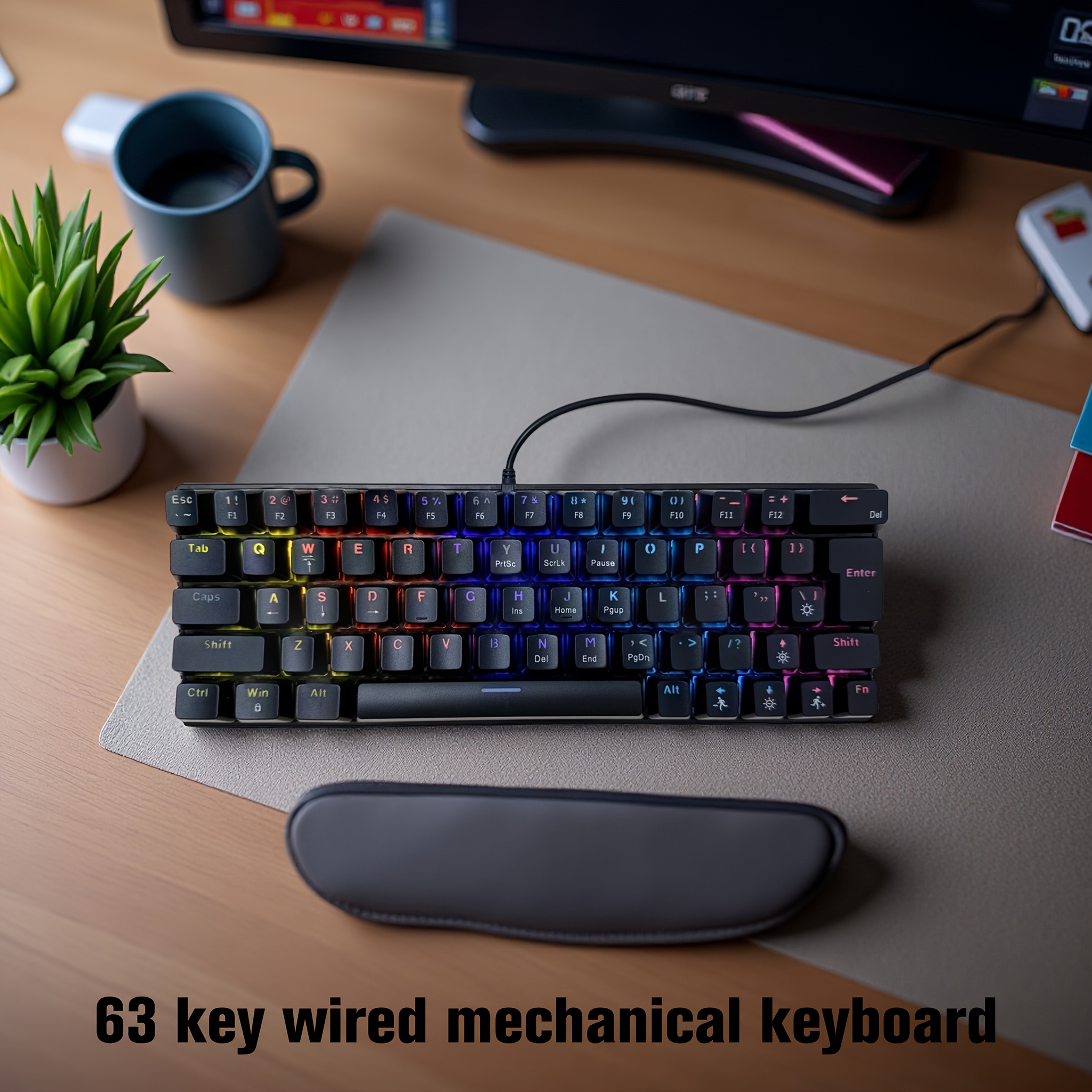 63-Key Mechanical Keyboard with 12 Lighting Effects, Compact Ergonomic Design, USB Wired, Plug & Play, Multi-System Compatible, No Battery Needed, Ideal for Office and Gaming, Gaming Keyboard
