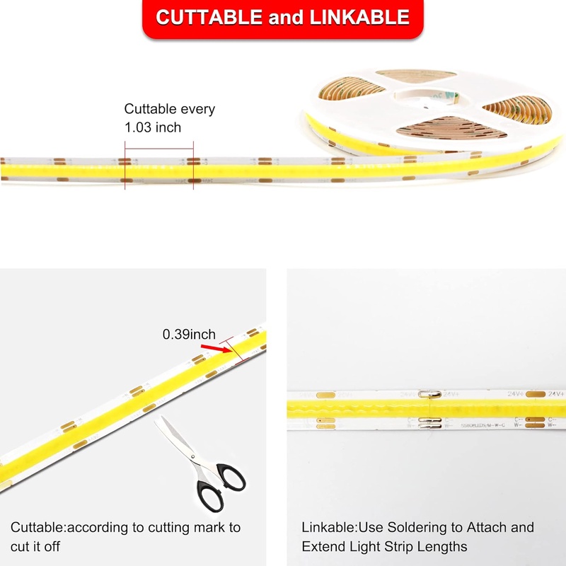 CCT COB LED Strip Lights Tunable White, 16.4ft Dimmable 2700K - 6500K 24V Tunable White LED Strip Lights Set, High Density led Strips CRI 90 UL - Listed Power ply, for Bedroom Kitchen Home DIY Lighting