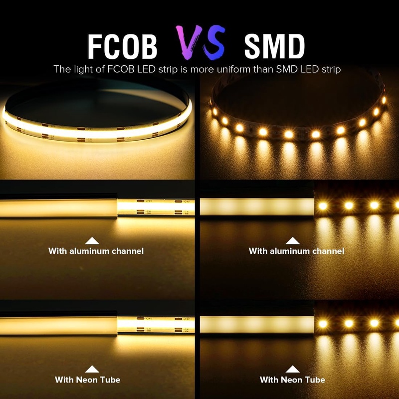 FCOB COB LED Strip CCT Flexible High Density 2X16.4FT Total 32.8FT 640LED m Tunable 3000K - 6000K DC24V CRI 90 Dimmable Light Ribbon for Indoor Decoration No Adapter or Controller