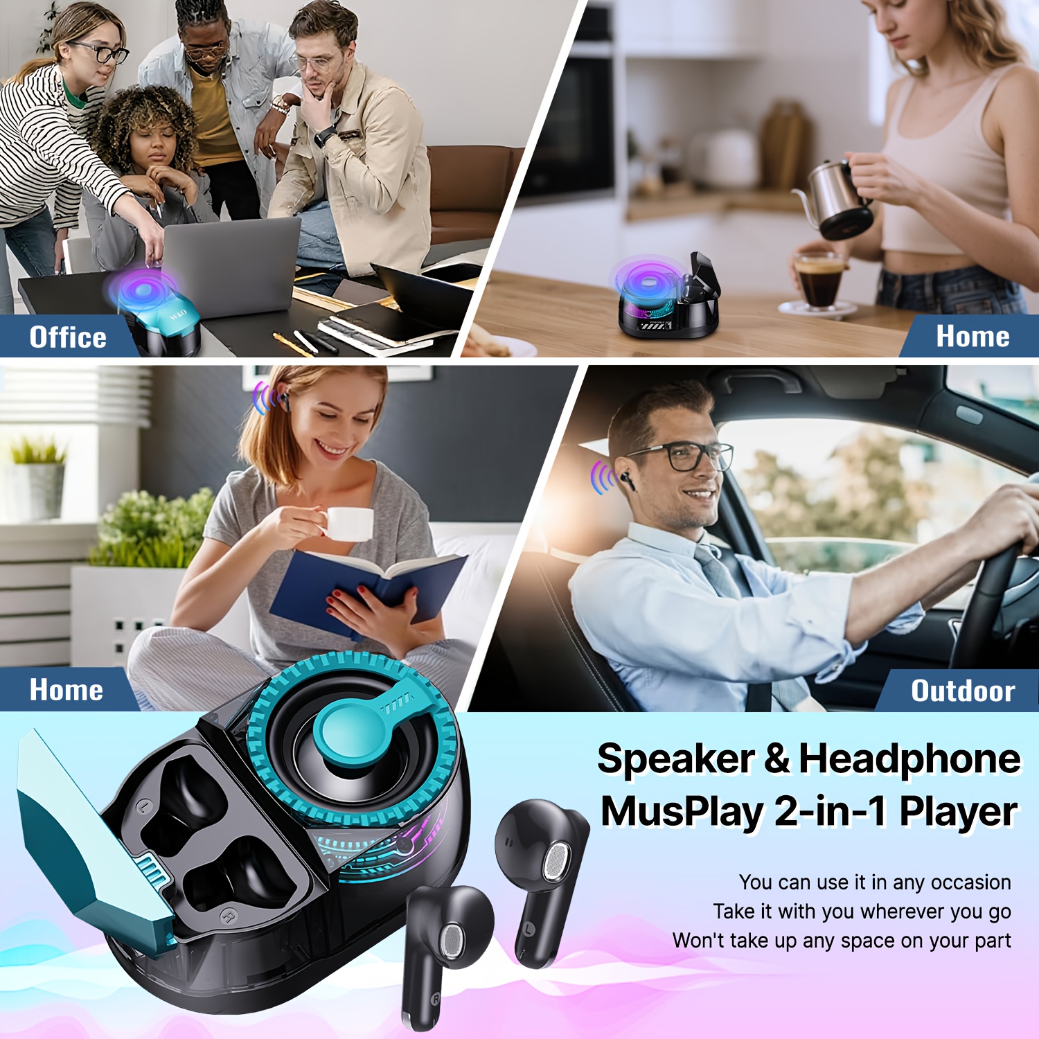 Portable Wireless Earphones And Speaker, 3-in-1 Mini Speaker with RGB Lighting And In-ear Headphones, Also Used As Phone Stand, Wireless Running Headphones, Magnetic Wireless Speaker, Double BT Mode, Perfect for Indoor And Outdoor Family Parties., Outdoor Audio, Indoor Entertainment, Compact Design, Modern Headphones, Premium Audio, Durable Build, Multifunctional Headphones, Fitness Enthusiasts, Party Hosts, Headphone Wireles Wireless, Earbud Wireles Wireless, Wireless Earbud