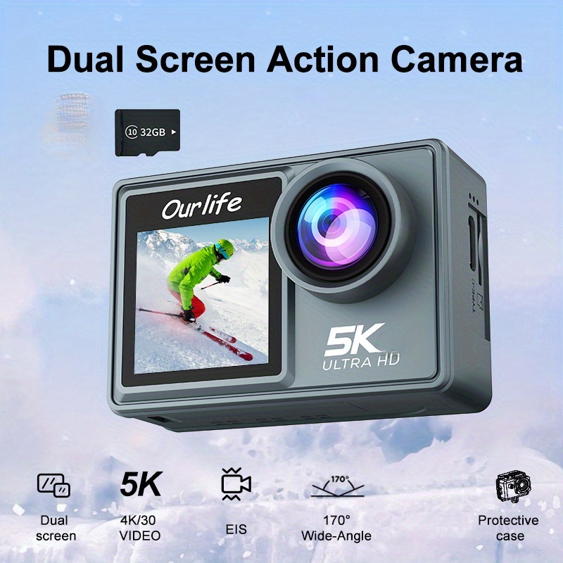 Ultra HD 5K Sports Camera, 2.0 Inch LCD Display, with 32GB Memory Card, with Remote Control, Wide Angle Lens, WIFI Underwater Camera, Skiing, Battery/USB Powered, Outdoor Cycling, Ideal Christmas And New Year Gifts for Extreme Sports Enthusiasts