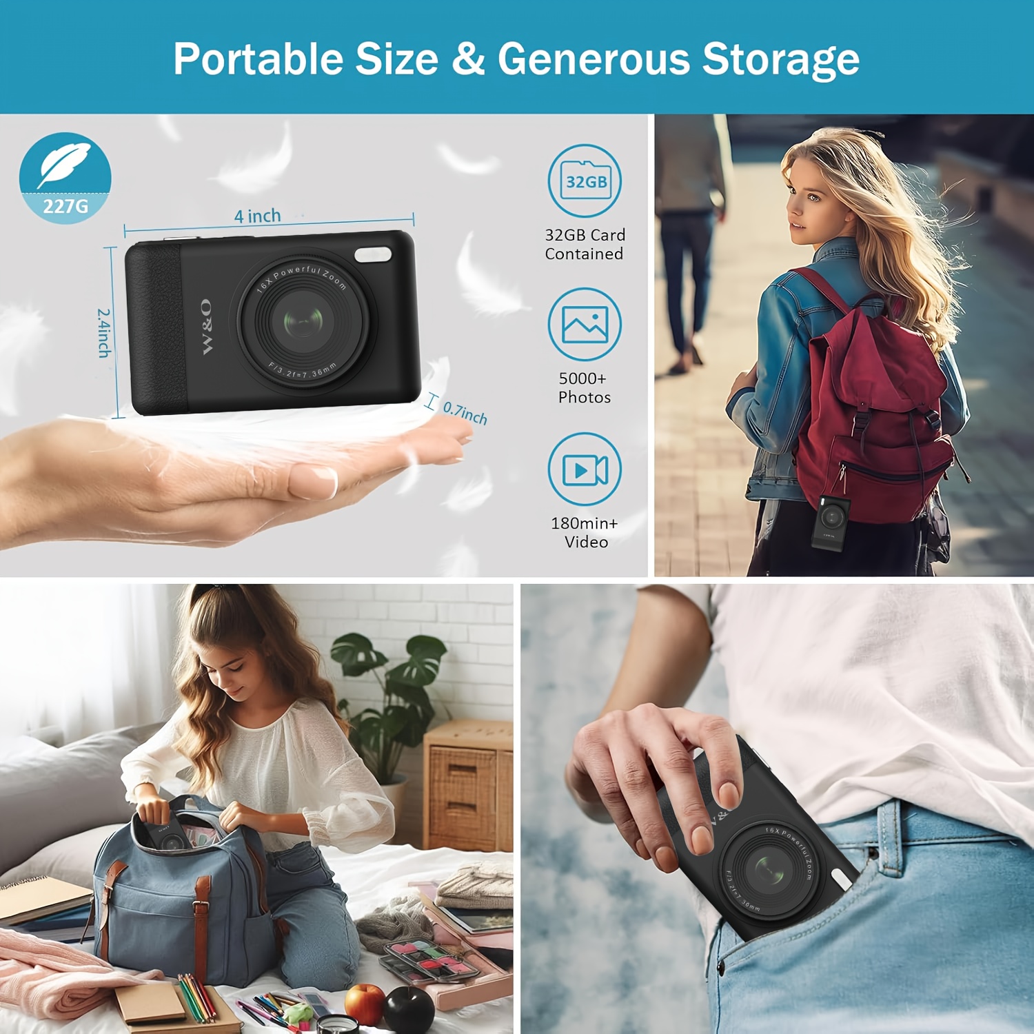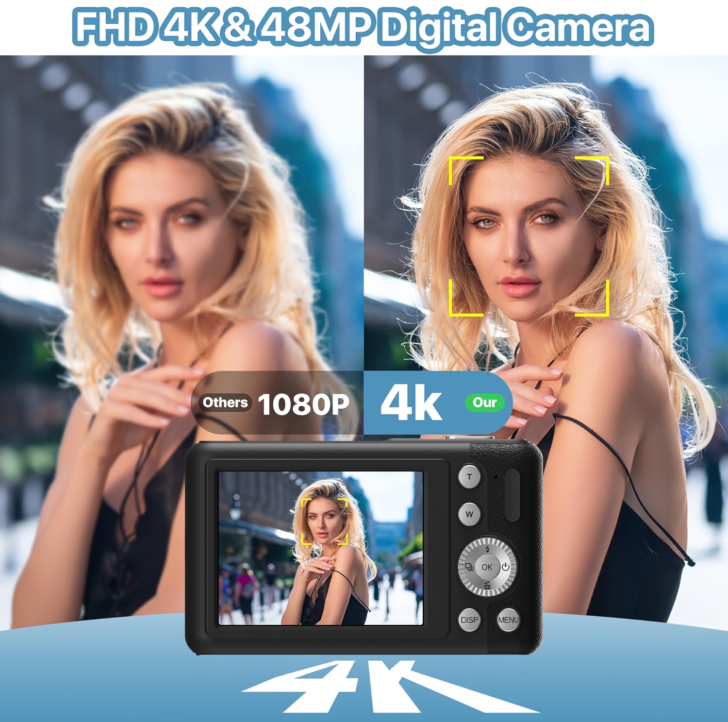 4K 64MP Digital Camera for Photos And Videos, Compact Design with Selfie Lens, Anti-Shake Feature, 16X Zoom, Includes 32GB Memory Card, Perfect Point-And-Shoot Camera for Teens And Beginners, Great Birthday Gift