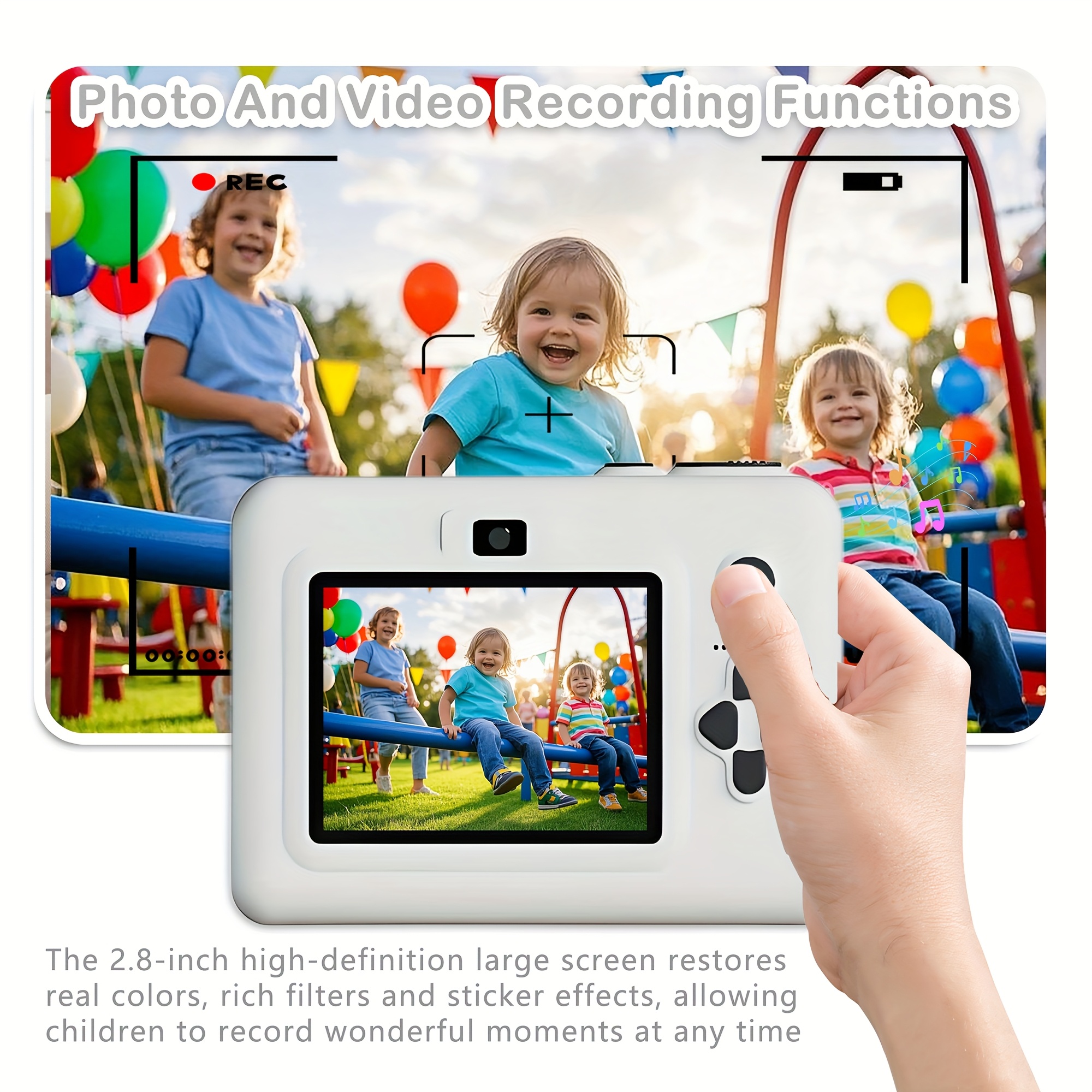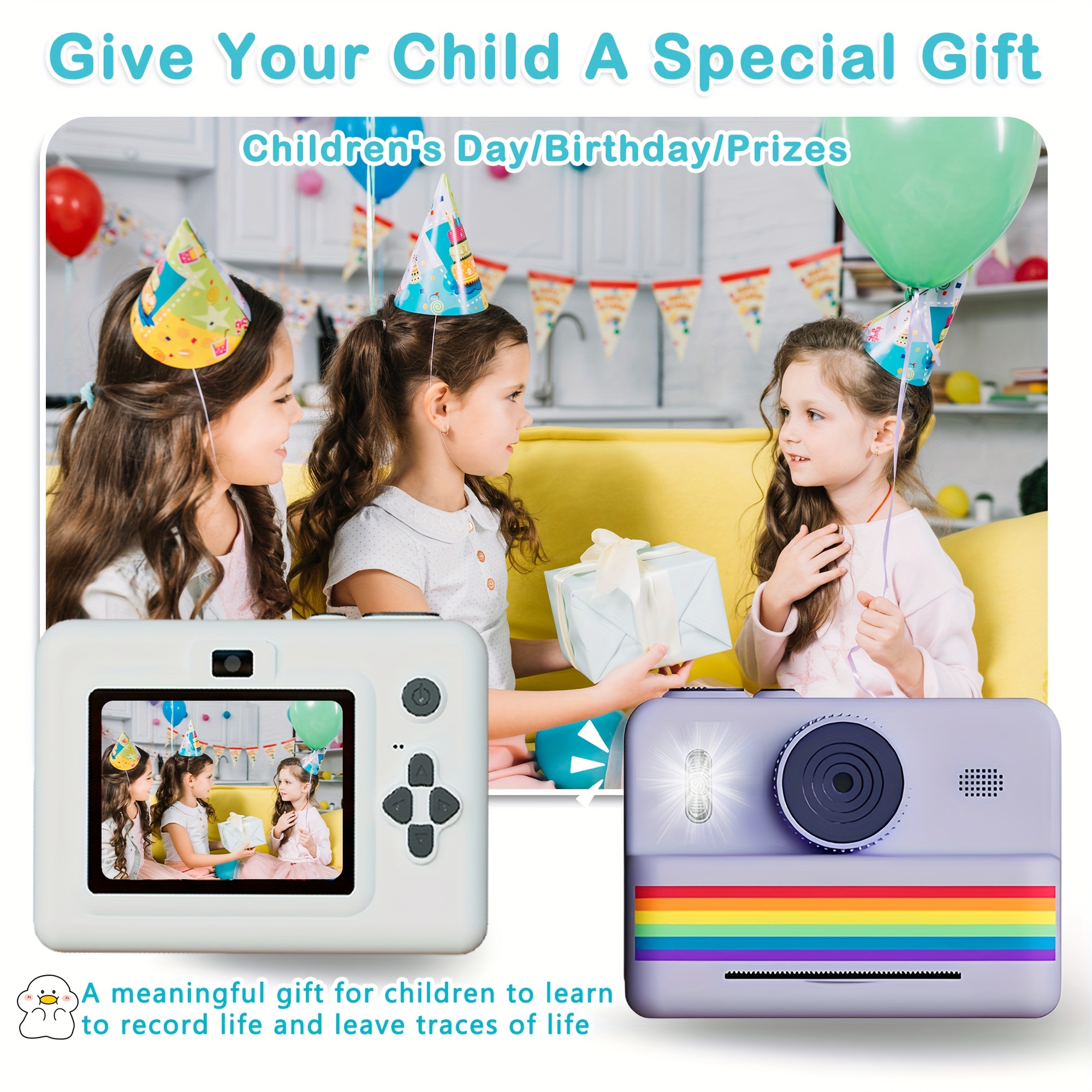 Children's Instant Camera, Kids' Print-on-the-Spot Camera with Printing Function, 2.8-inch HD Screen, 1080P Video, Includes 3 Rolls of Photo Paper, 32GB Memory Card, Card Reader, 6 Paint Brushes, Lanyard, USB Charging Cable, Portable Multifunctional