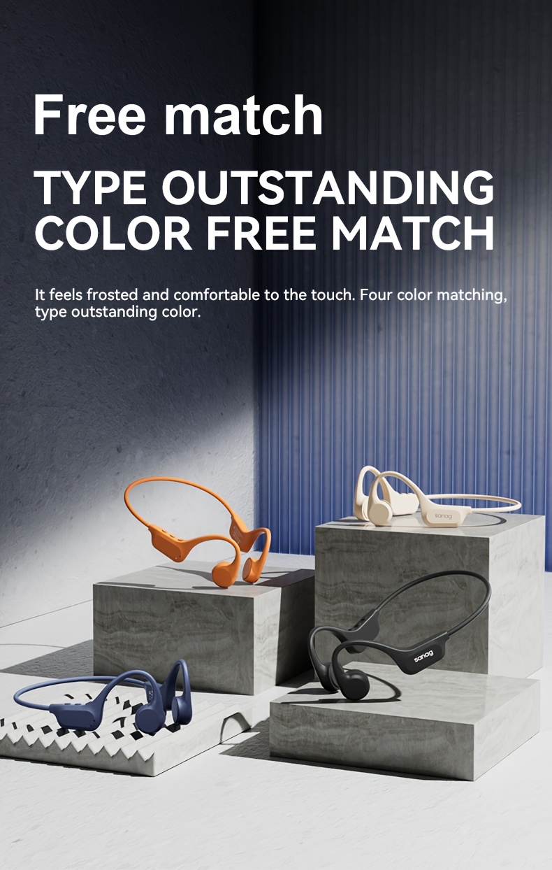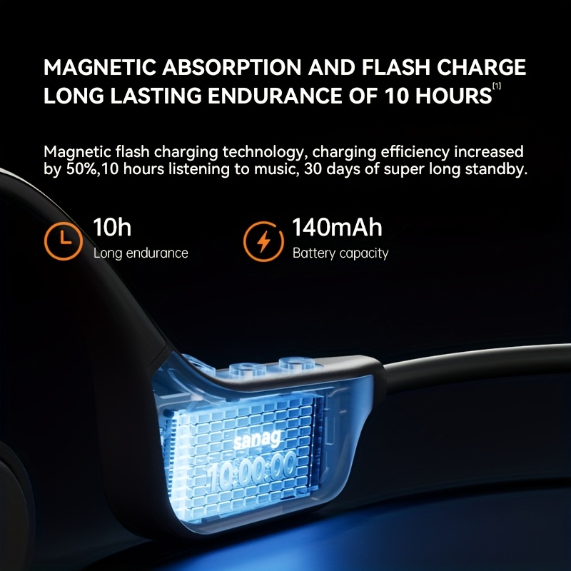 Sanag B60S Bone Conduction Headphones with 64GB Memory, Open Wireless Design, 3D Stereo Sound, Suitable for Running And Cycling