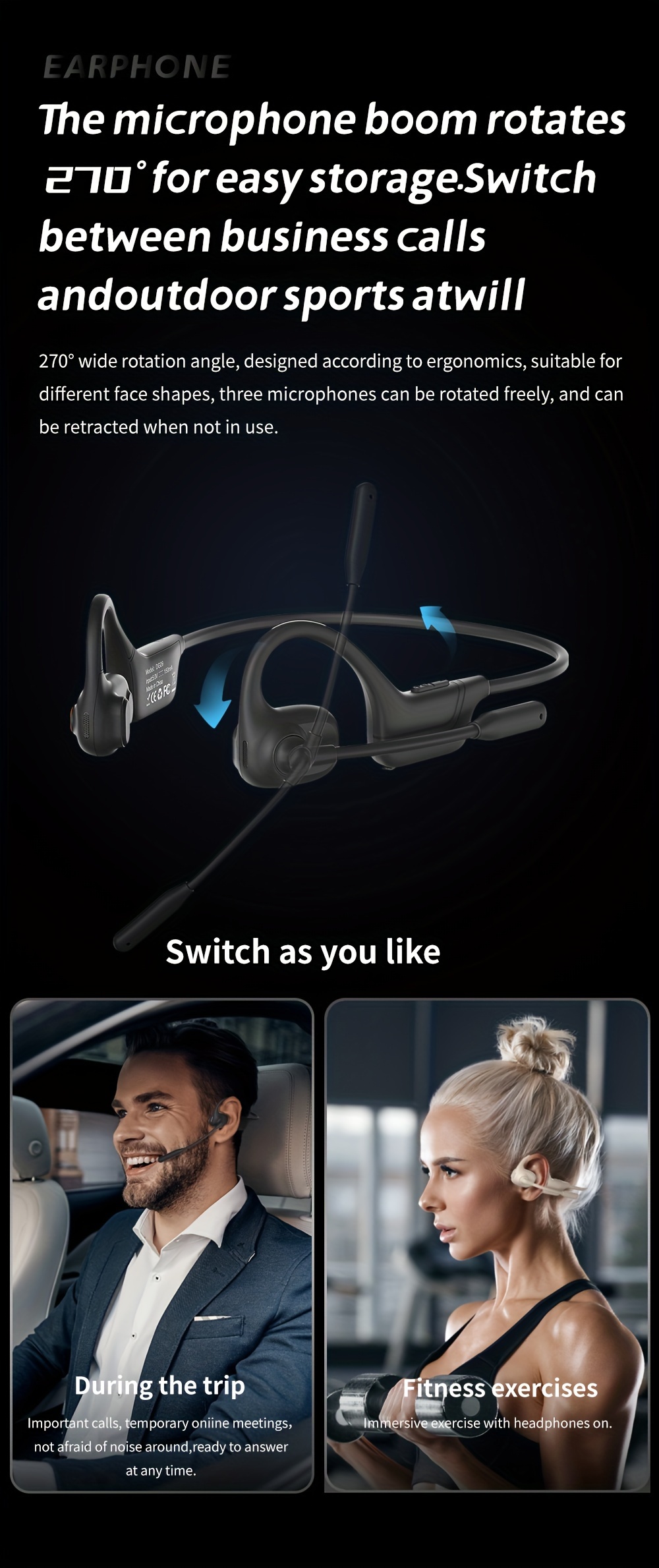 [Wireless Headphones] Wireless V5.3 Dual-Mic Noise Reduction Headphones | Open-Ear, Air Conduction, DSP/CVC8.0, Type-C Charging, Ideal for Driving, Business, Office, and Cycling