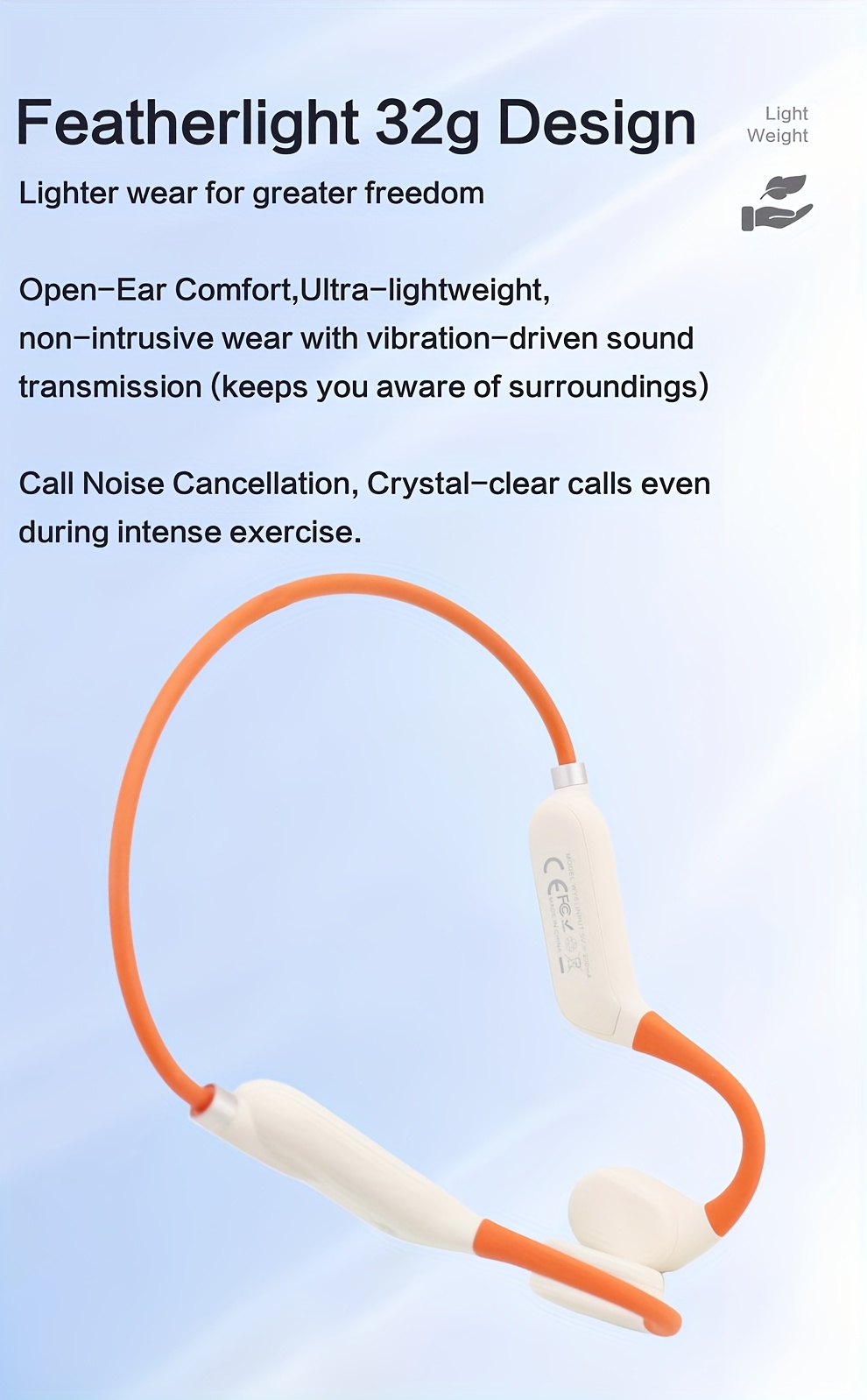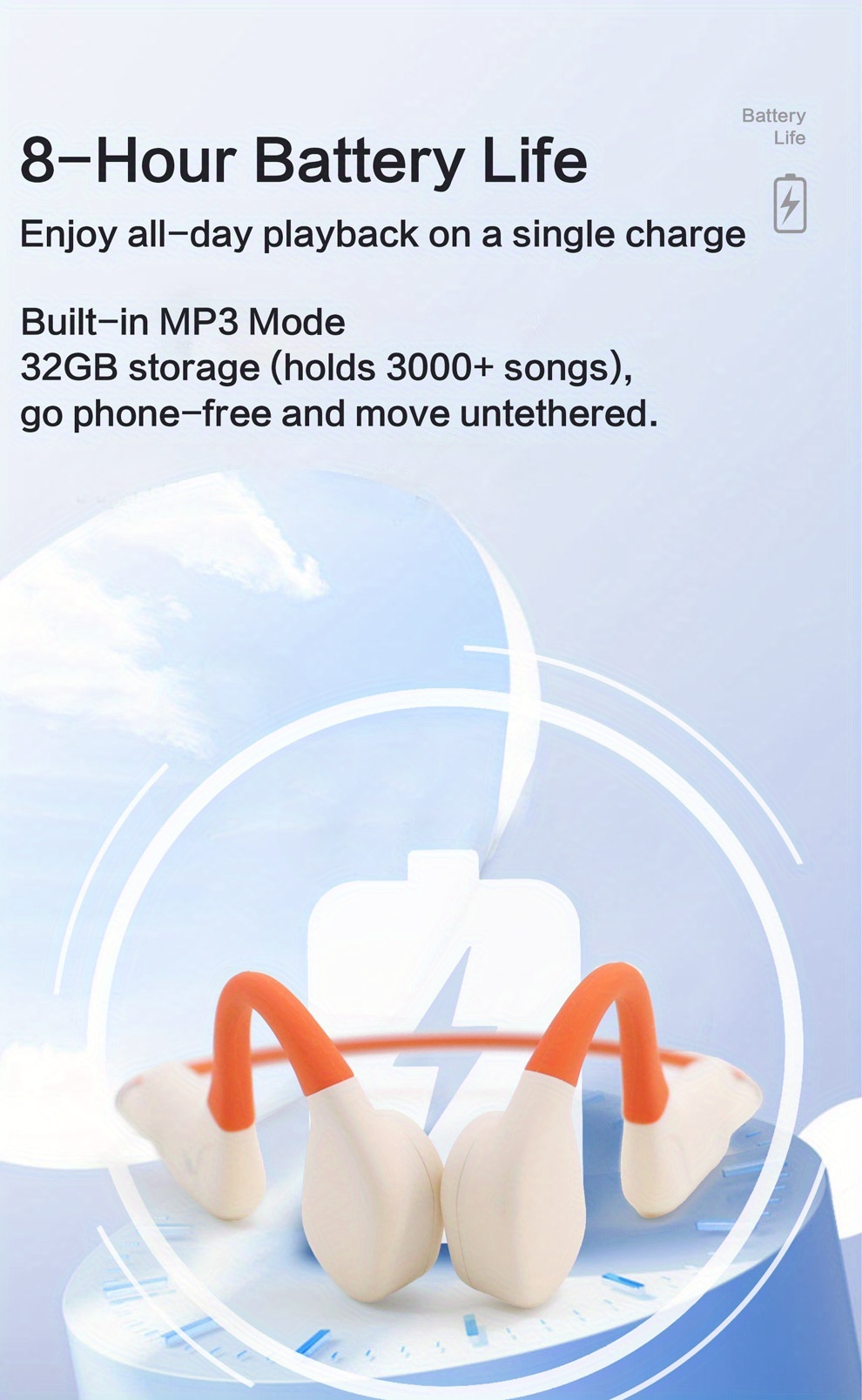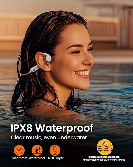 Wireless Open-Ear Headphones for Running, Swimming and Diving with IPX8 Rating, 32G Memory Bone Conduction Bluetooth Call Earbuds